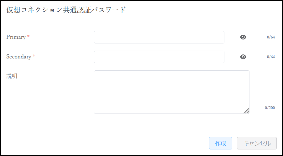 任意の仮想コネクション共通認証パスワード(Primary)を入力します。