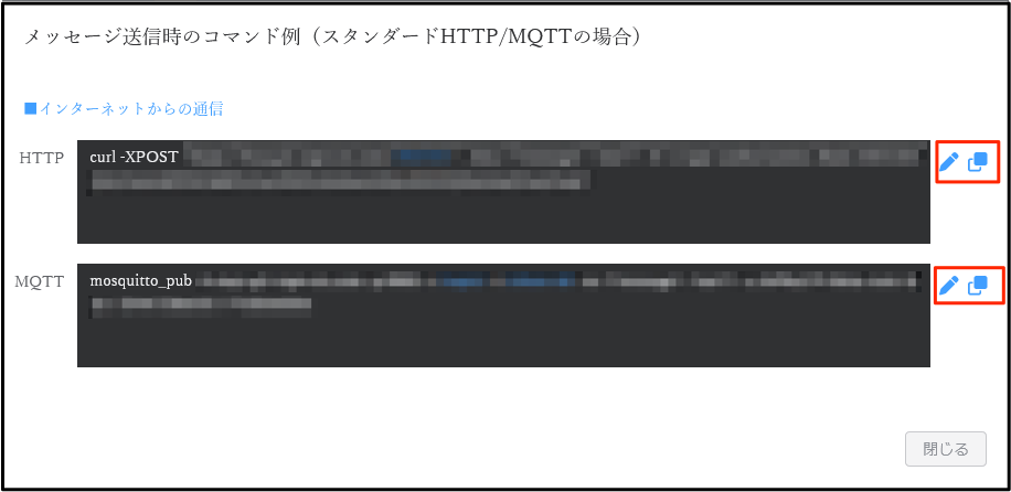 鉛筆アイコンをクリックすると、コマンドを編集出来ます。コピーアイコンをクリックすると、コマンド例をコピー出来ます。