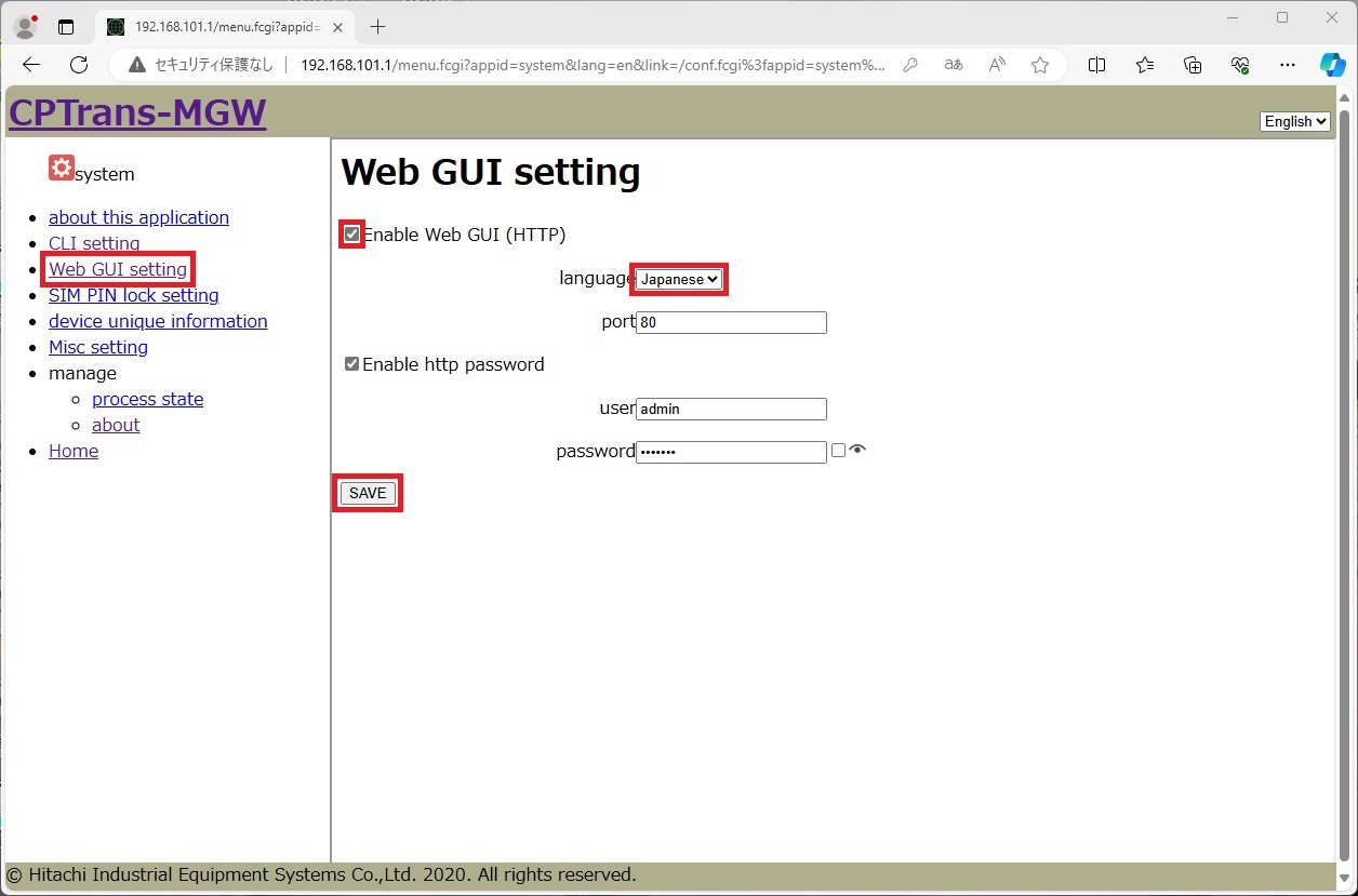 [Enable Web GUI (HTTP)] チェックボックスをチェックします。