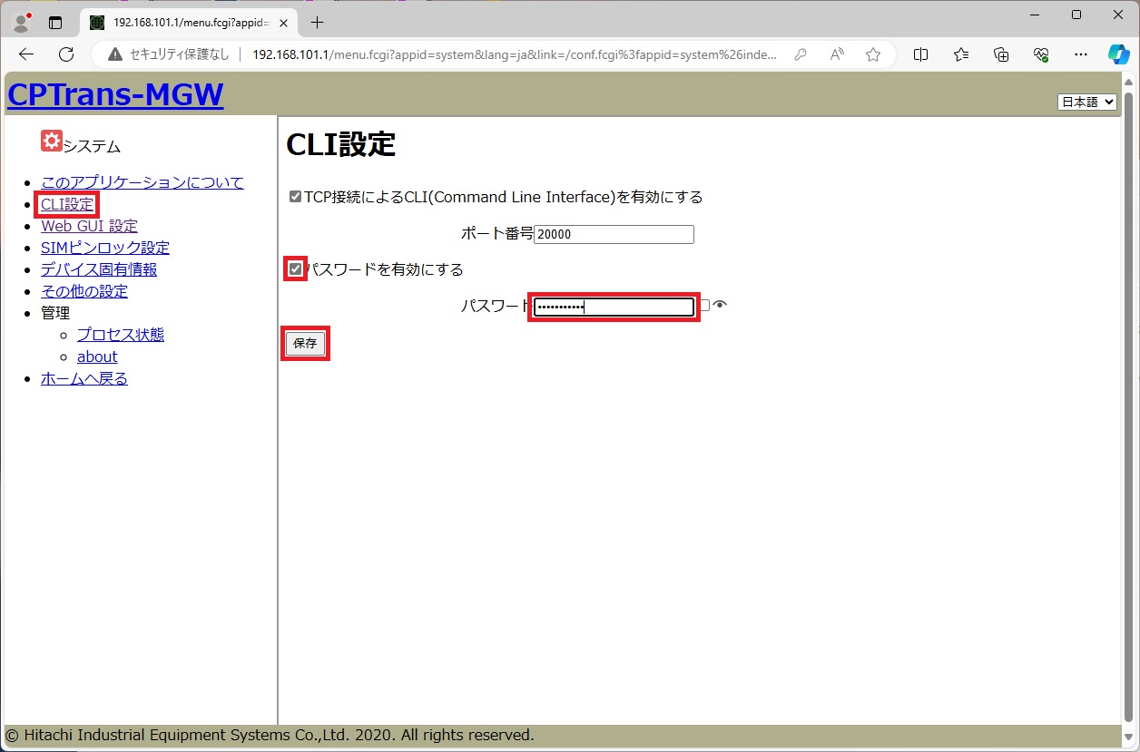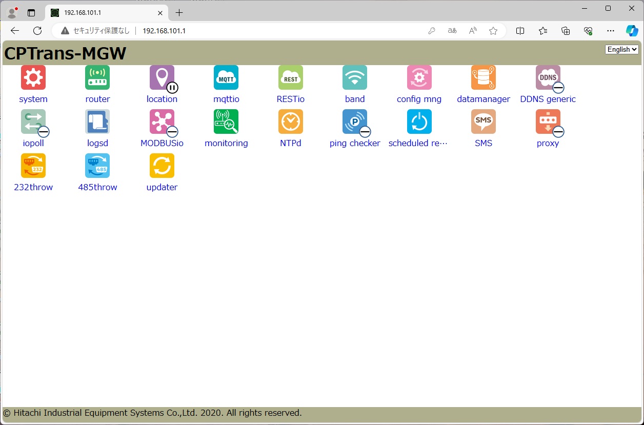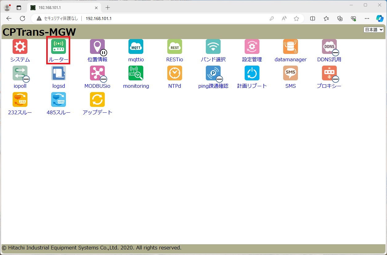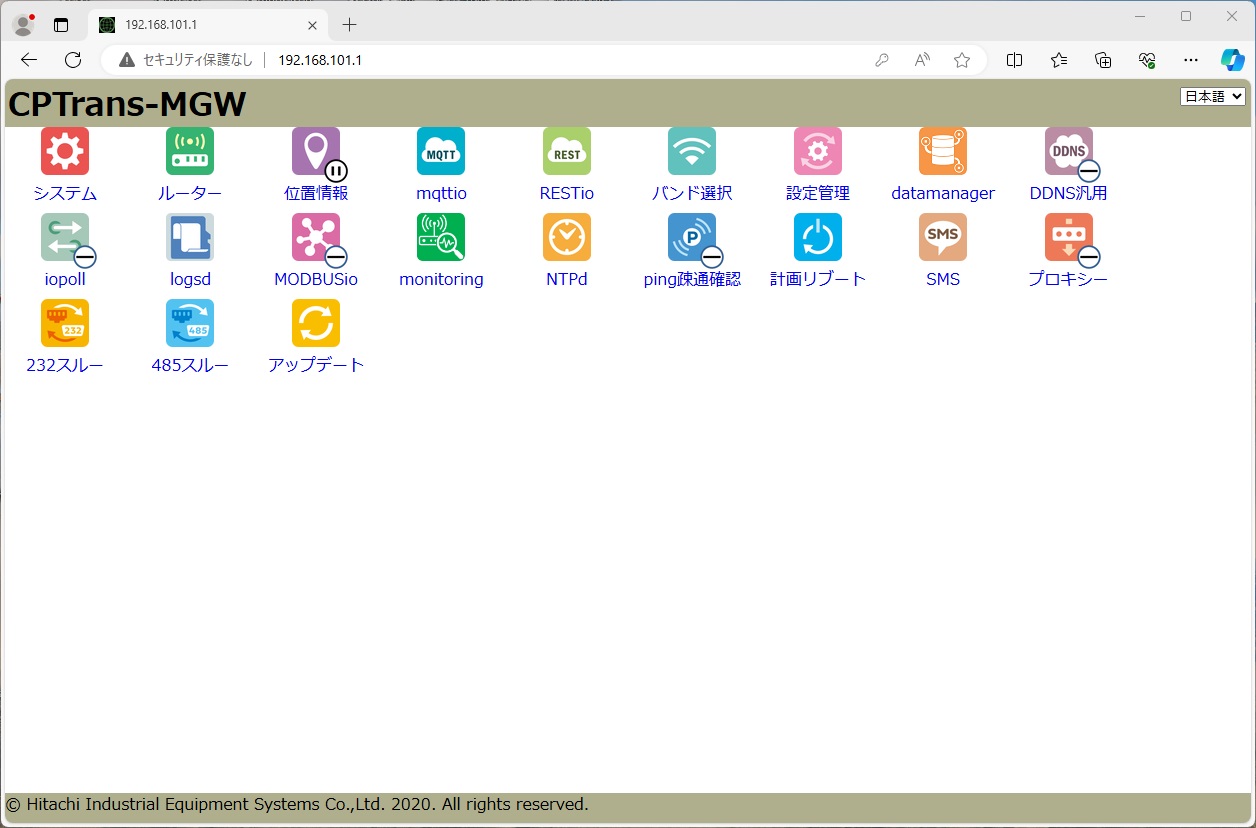 日立産機システム社製CPTrans-MGWの設定手順例です。 機器の詳細は、 日立産機システム社ホームページ をご確認ください。