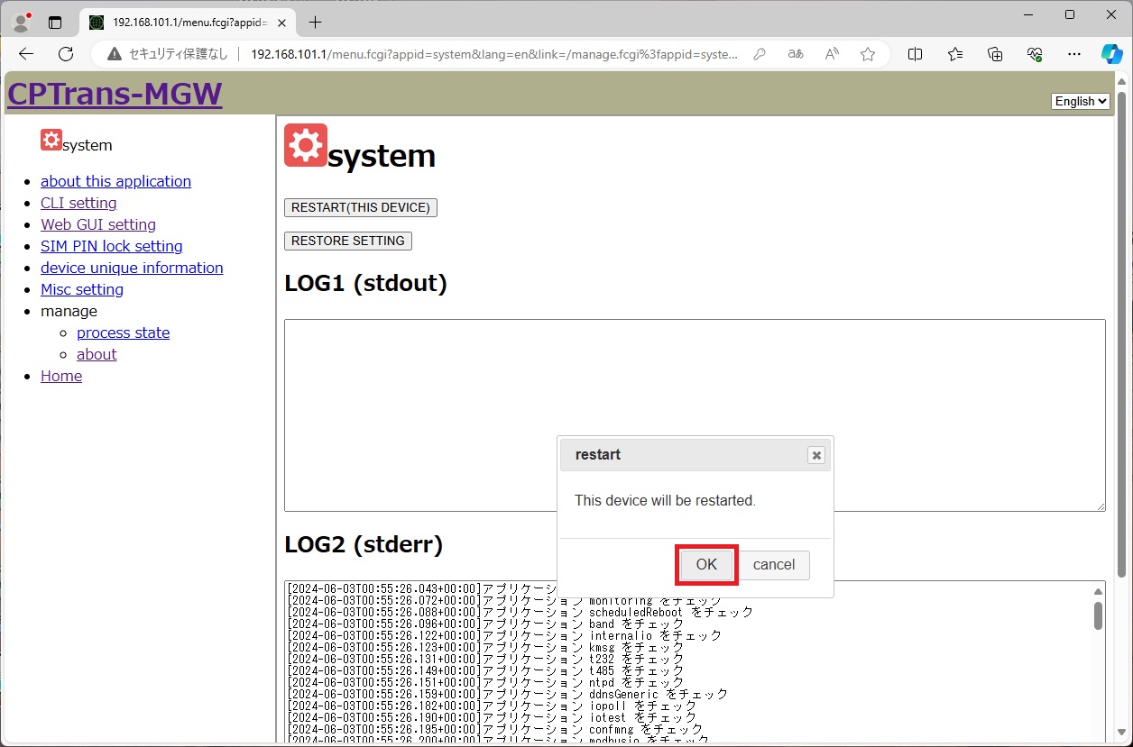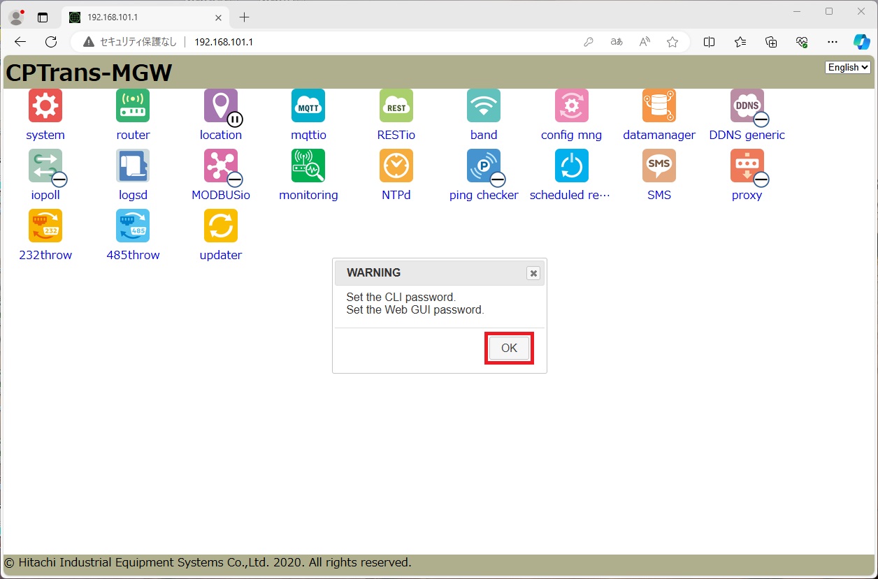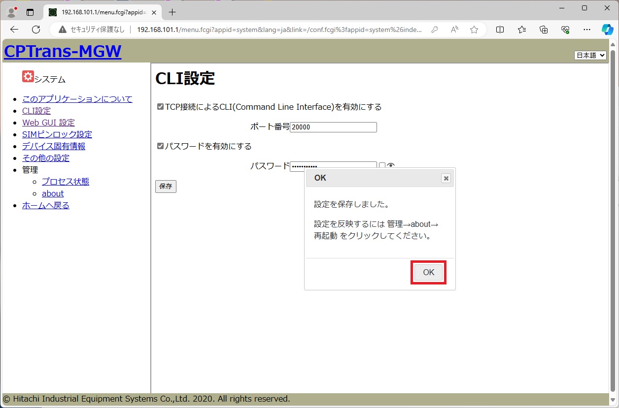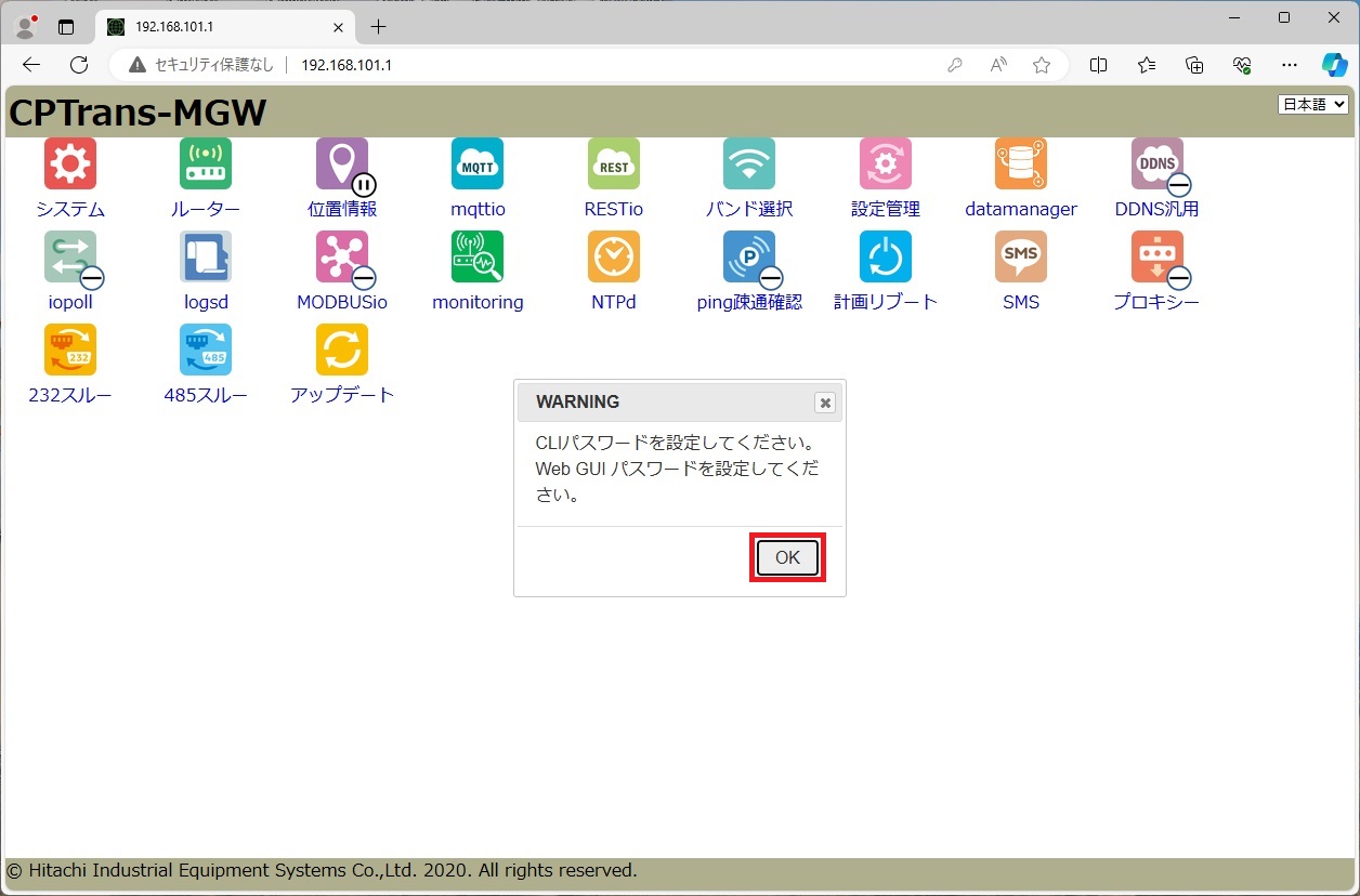 日立産機システム社製CPTrans-MGWの設定手順例です。 機器の詳細は、 日立産機システム社ホームページ をご確認ください。
