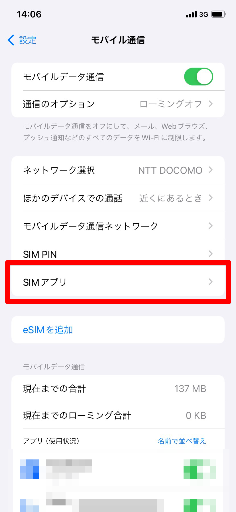 アプレットがインストールされていない場合は「SIMアプリ」が表示されません