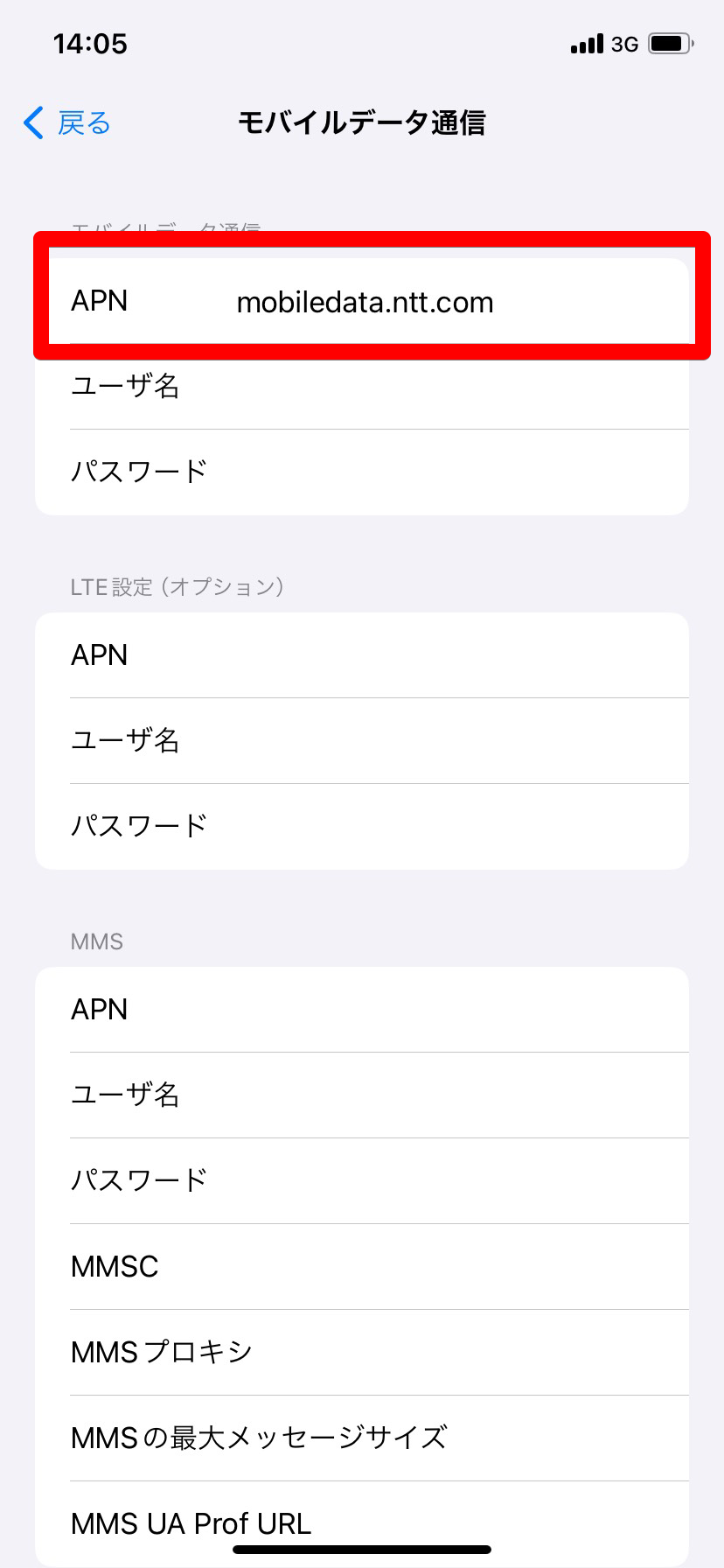 契約内容によりAPNは異なるため ここ から正しい値を確認してください