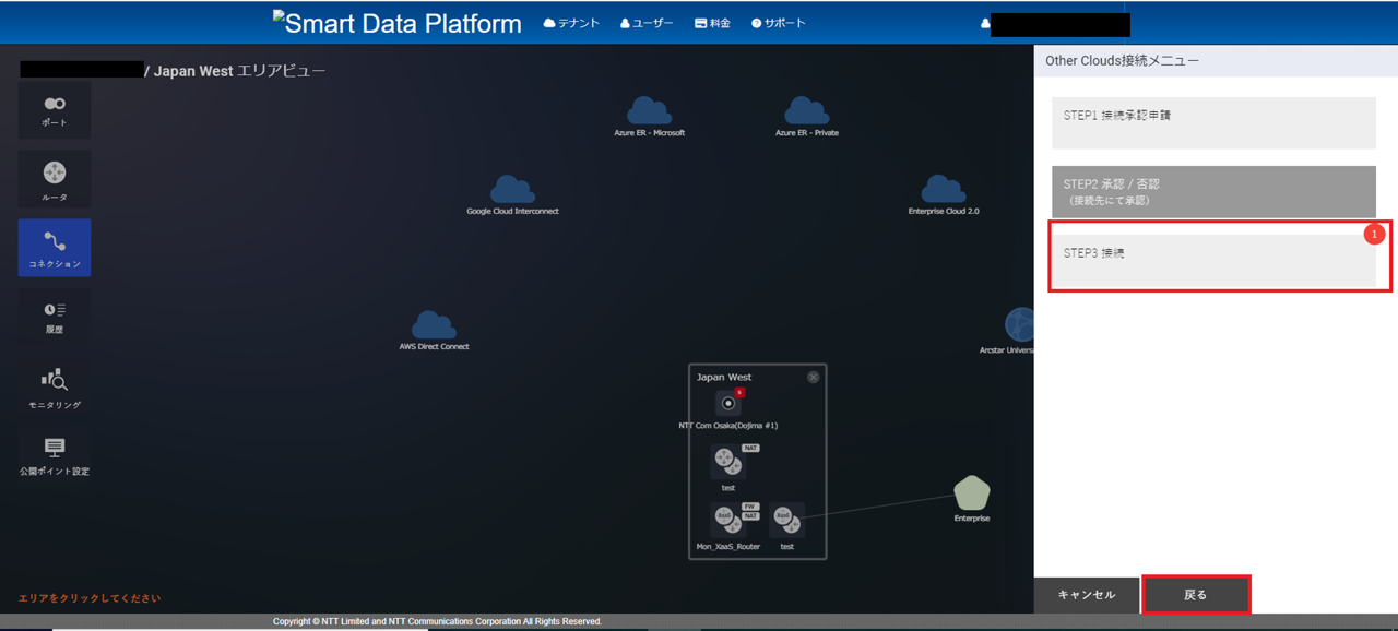 (5)画面右側にOther Cloud接続メニューが表示されますので、「STEP3接続」を押下します。
