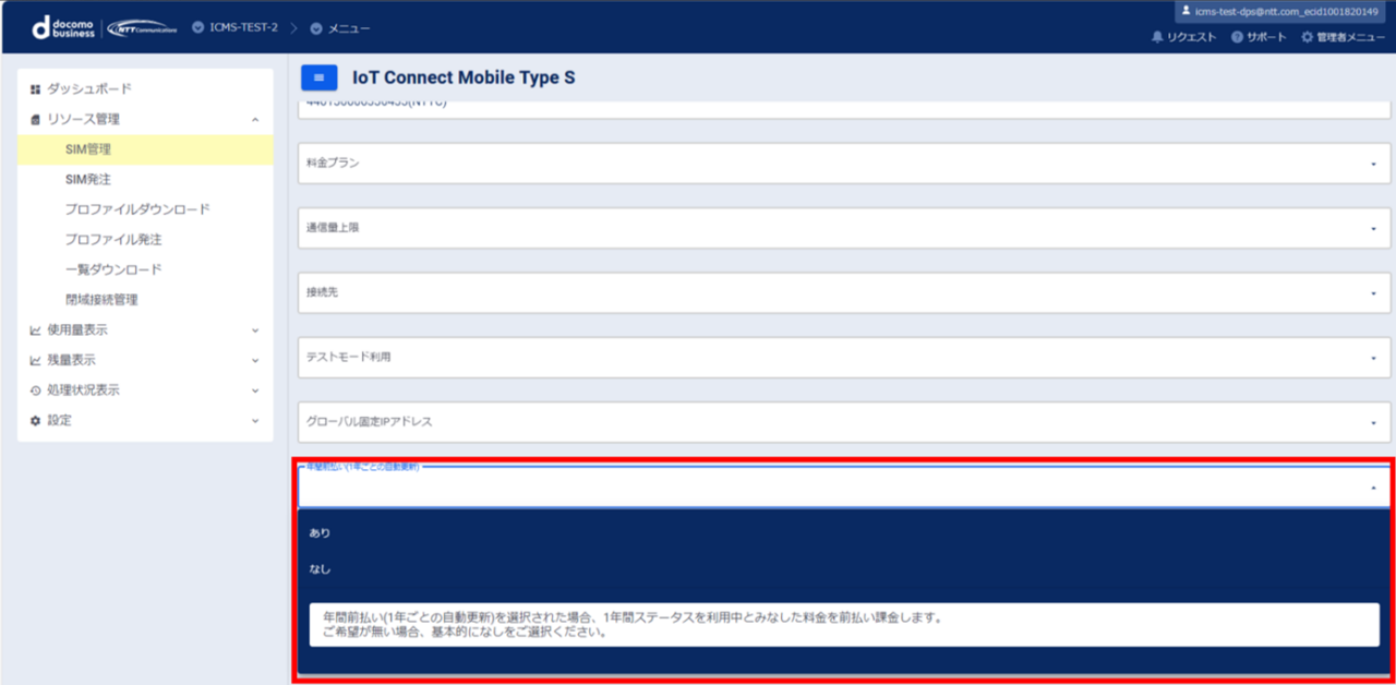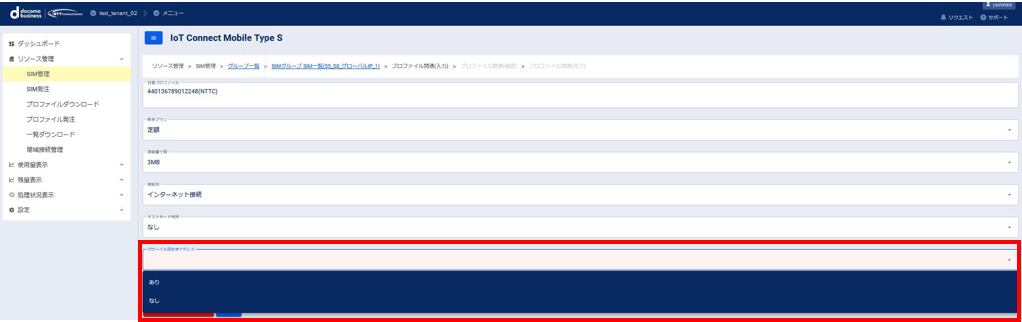 - マルチアクセスSIMの開通の際は、同一画面から2つのプロファイルに対して料金プランと上限値を設定していただきます。