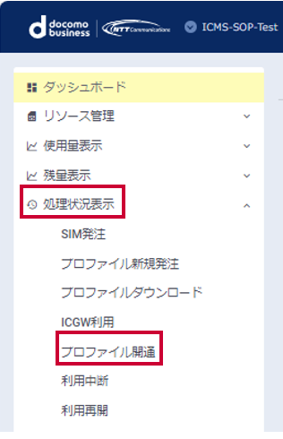 (1)処理状況表示>プロファイル開通のメニューを選択します。