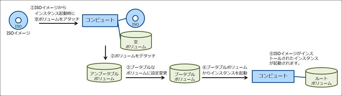 (サーバーインスタンスでは空ボリュームにISOイメージをアタッチし、OSインストーラーとして利用できます。