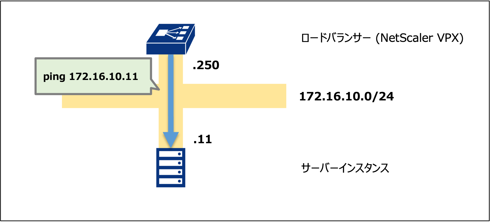 ロードバランサーからサーバー(172.16.10.11)に対しPingを実行し疎通確認を行います。