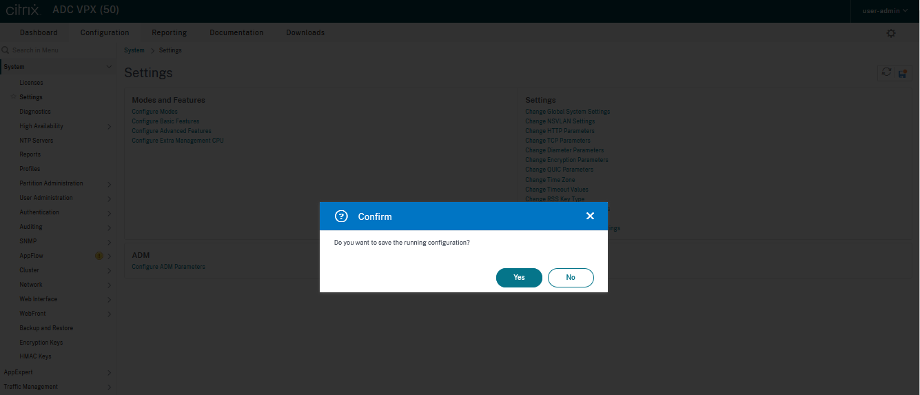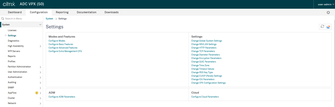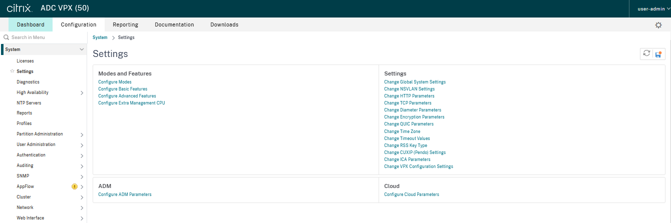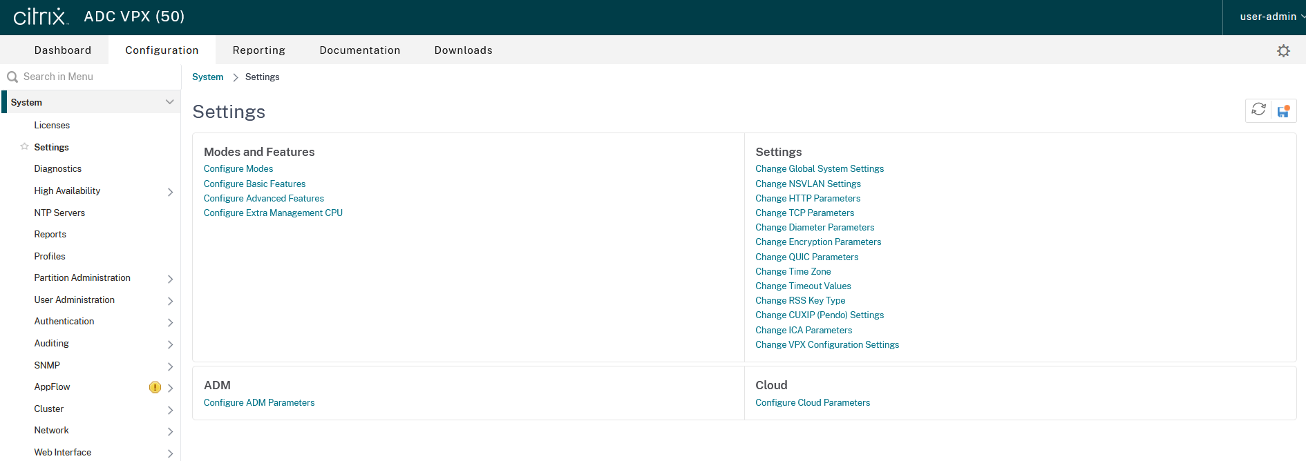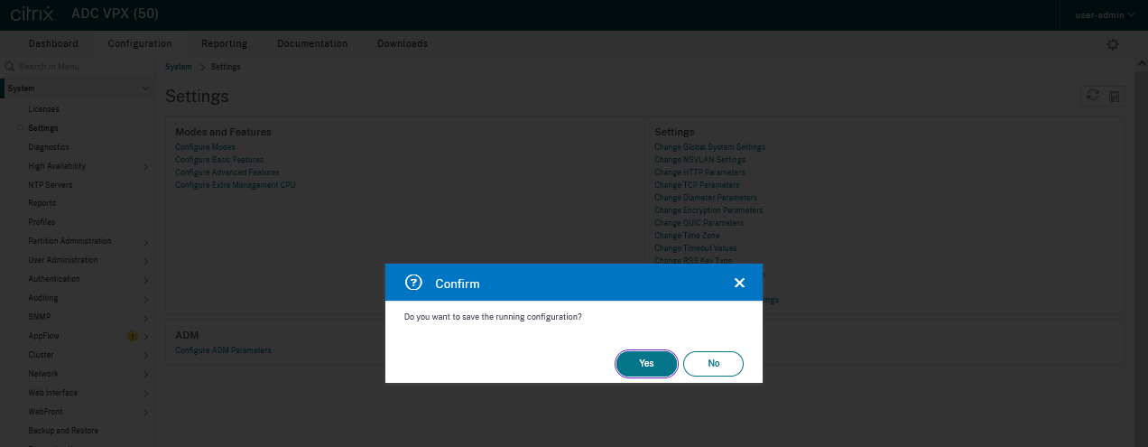 「Configuration」メニューより「system」→「Settings」と進み、「Configure Modes」をクリックします。