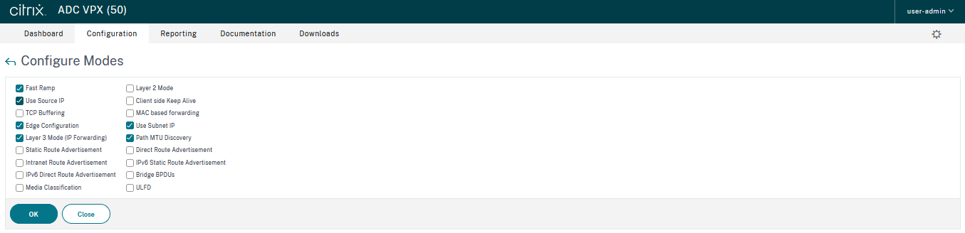 Configure Modes画面が開きますので、「Use Source IP」にチェックを入れて、「OK」ボタンをクリックします。