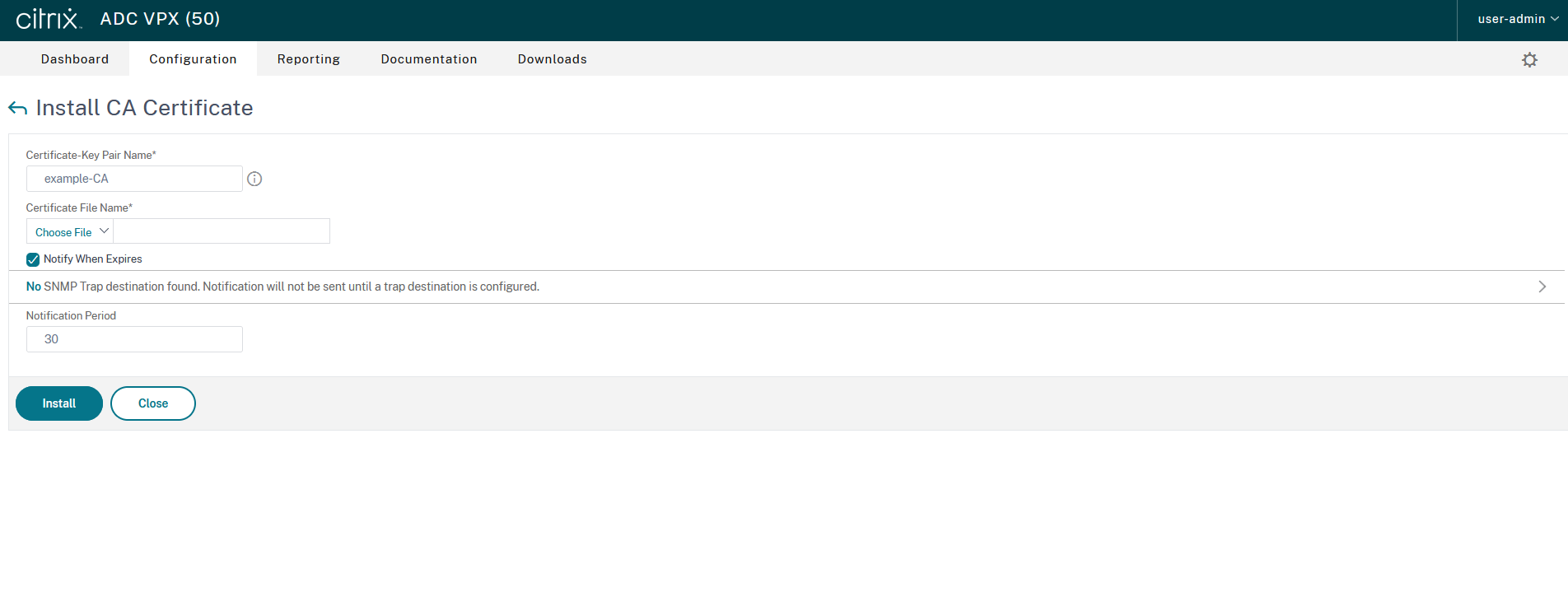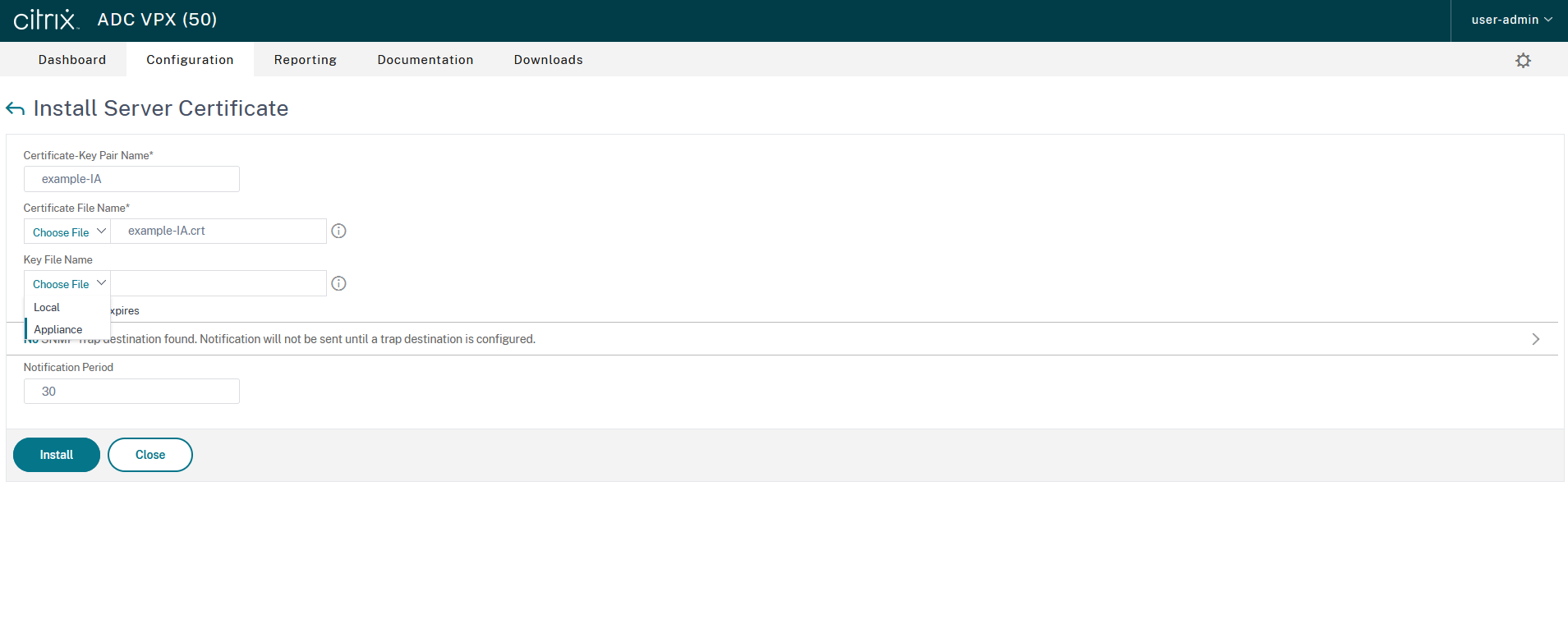 製品不具合により、以下全ての条件を満たし証明書及び鍵を登録した場合、「Password required for private key」というメッセージが表示され、インストールすることができません。NetScaler VPXやLinux OS上で作成した改行コード「\r\n」を含まない鍵をご利用ください。