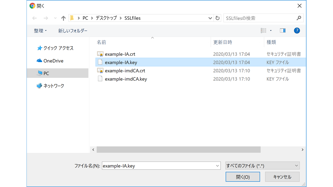 パスワード付きの鍵と鍵付きの証明書を使用する