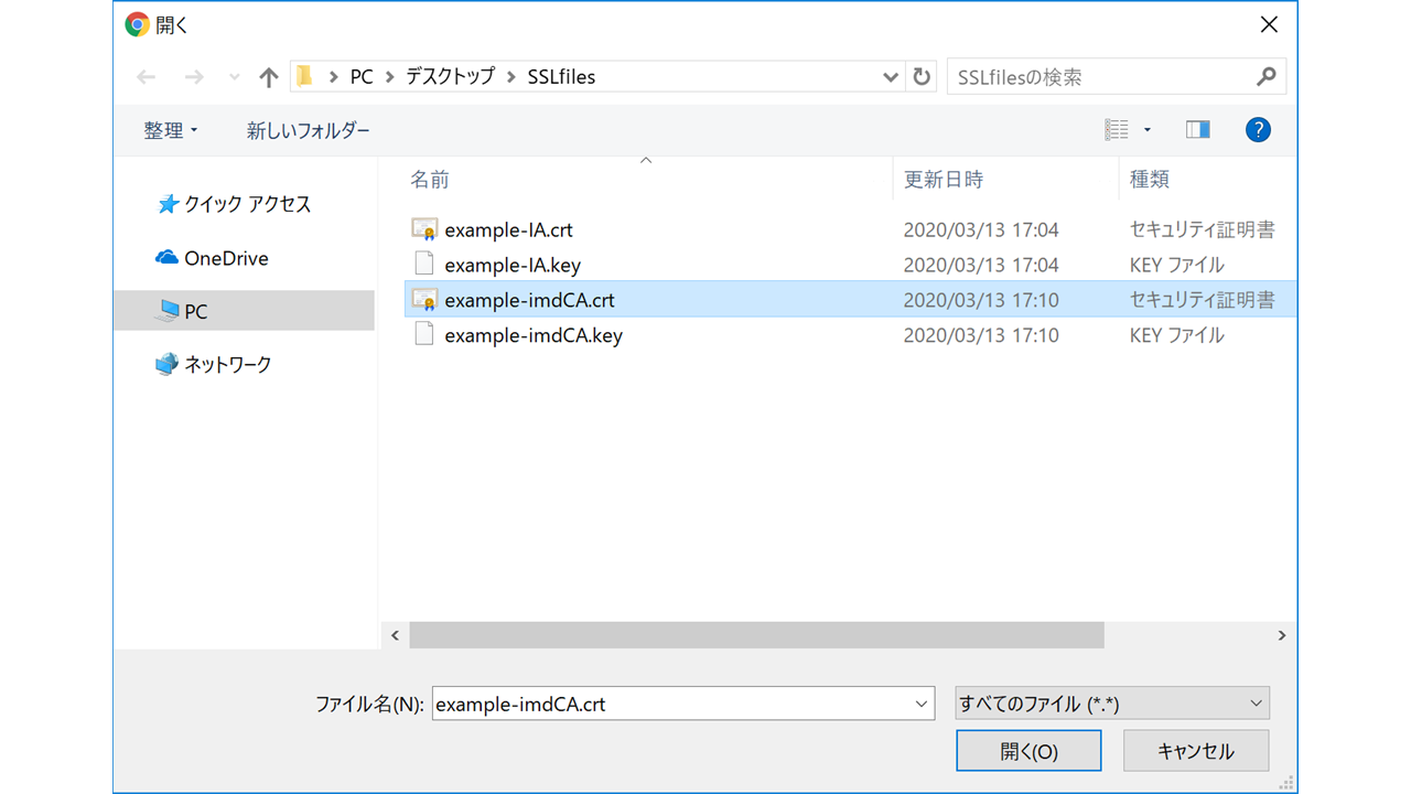 複数証明書を登録する際は、各々別のファイル名で登録してください。