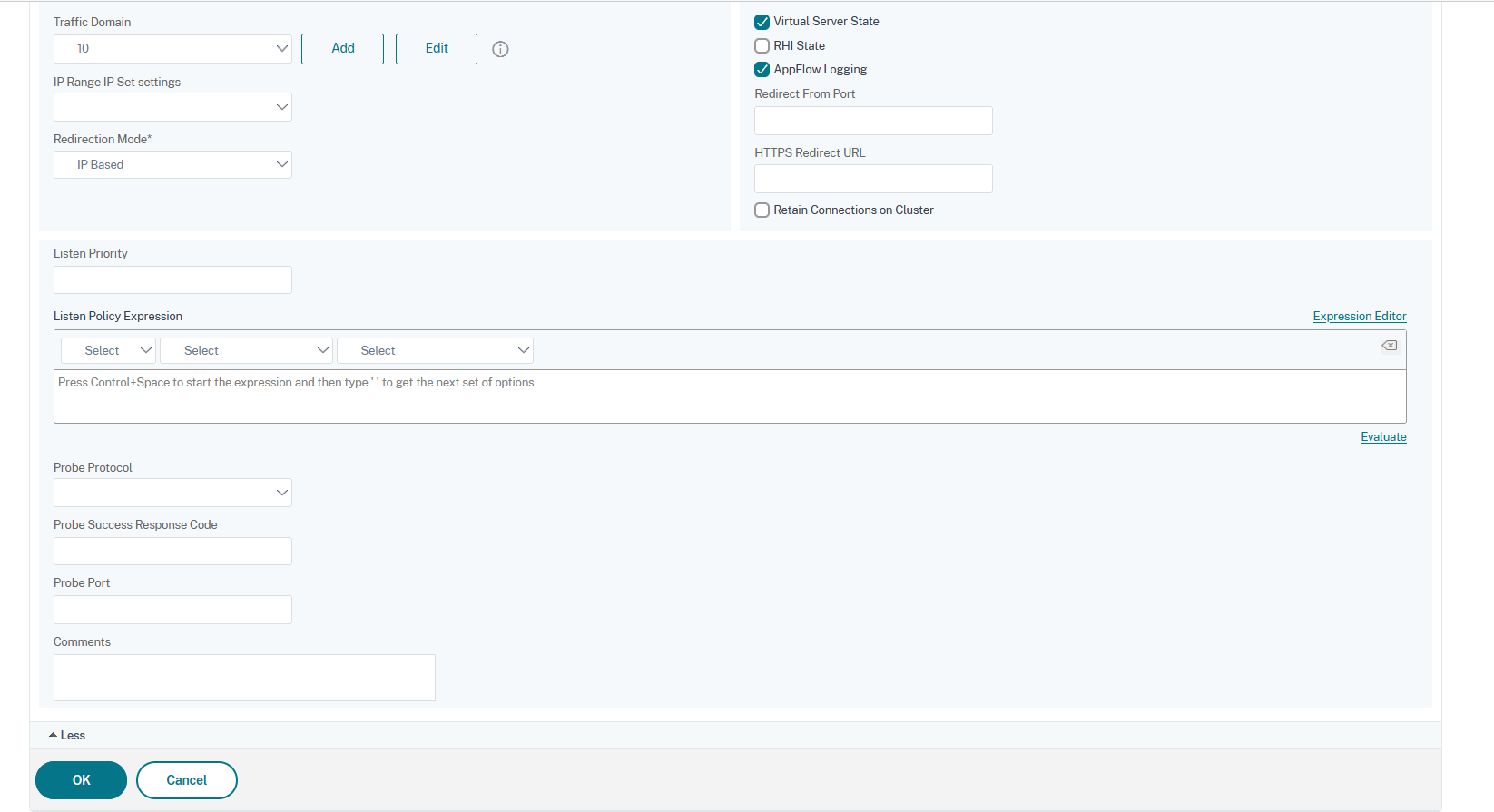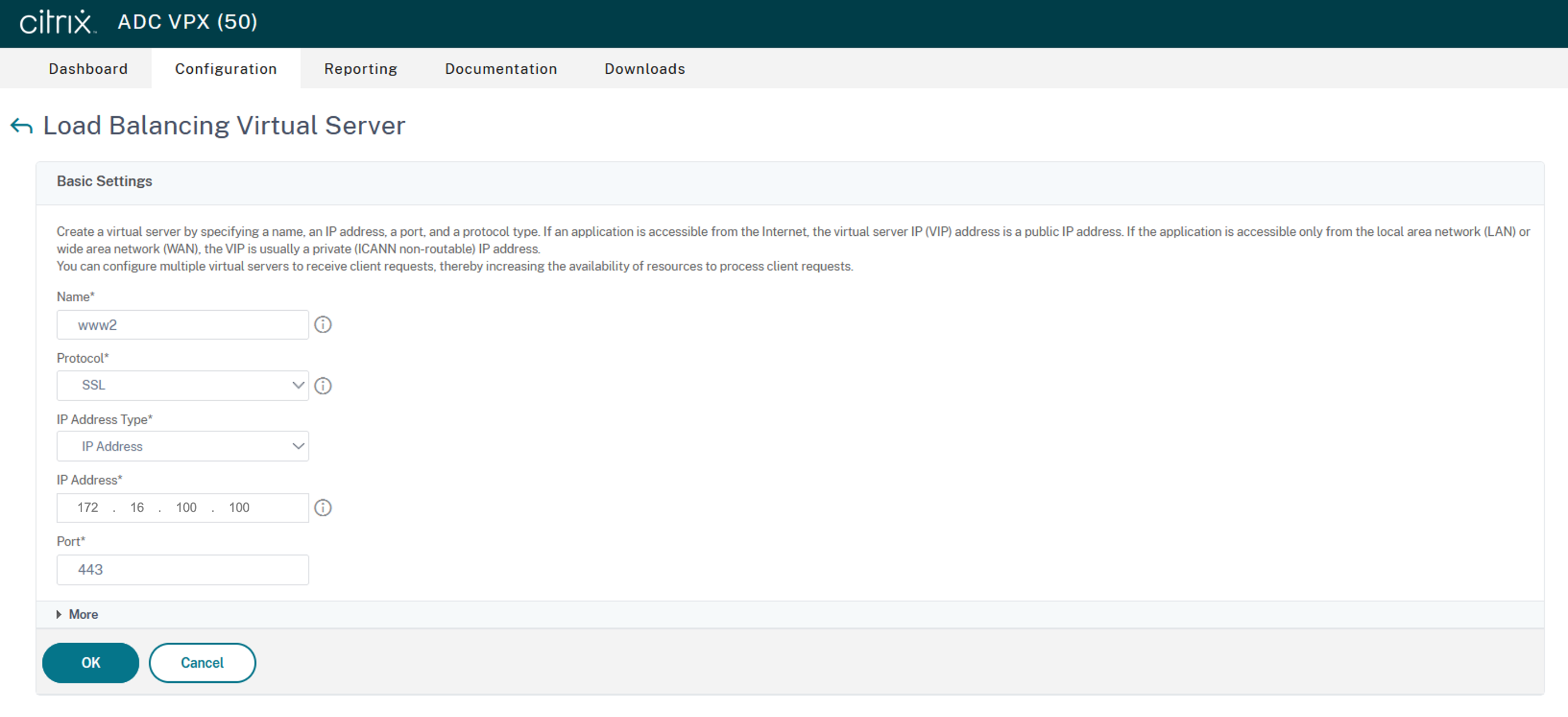 Load Balancing Virtual Server画面では以下のとおりに入力していきます。