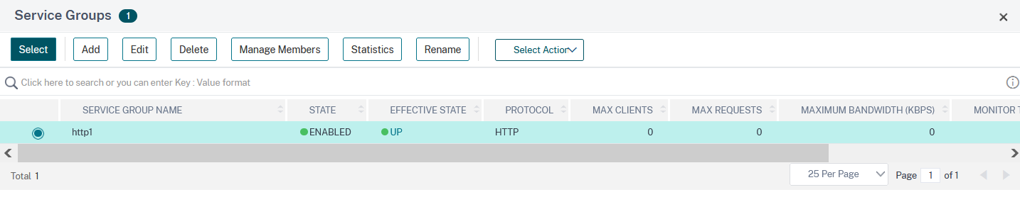 Service Groupの選択画面が表示されるので、対象のService Groupを選択し、「Select」をクリックします。
