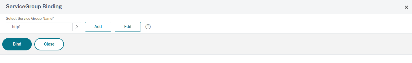 ServiceGroup Binding画面が表示されるので、「Select Service Group Name」に対象のService Groupが入力されているのを確認し、「Bind」をクリックします。