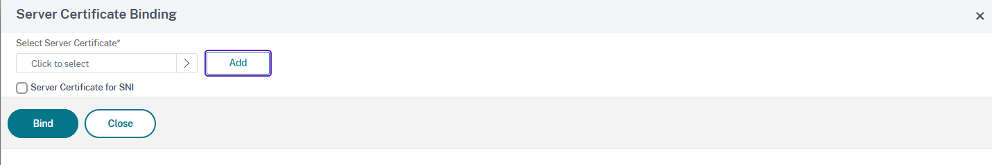 Server Certificate Binding画面が表示されるので、「Select Server Certificate」の「Click to select」 を選択しクリックします。