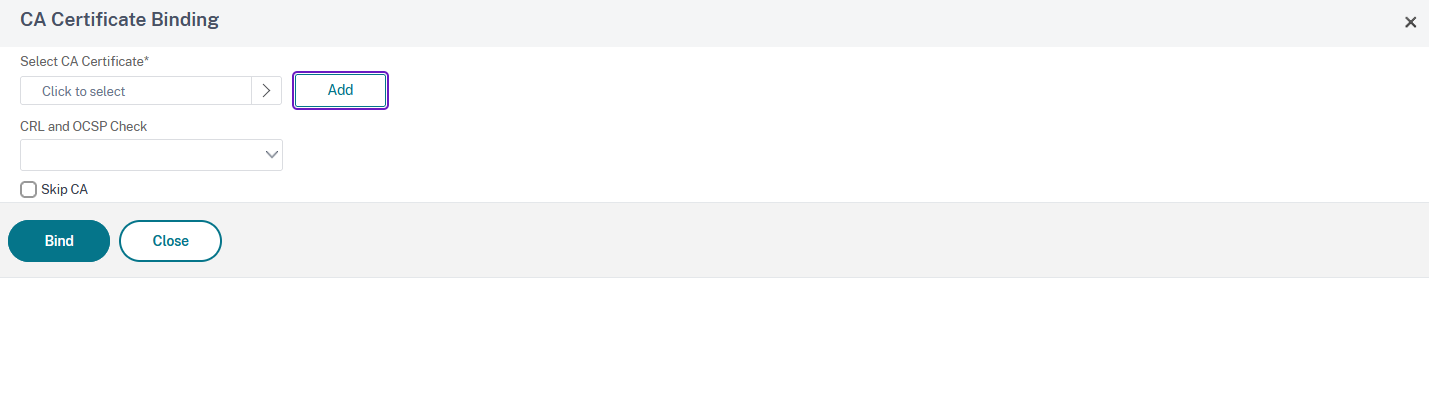 CA Certificate Binding画面が表示されるので、「Select CA Certificate」の「Click to select」 を選択しクリックします。