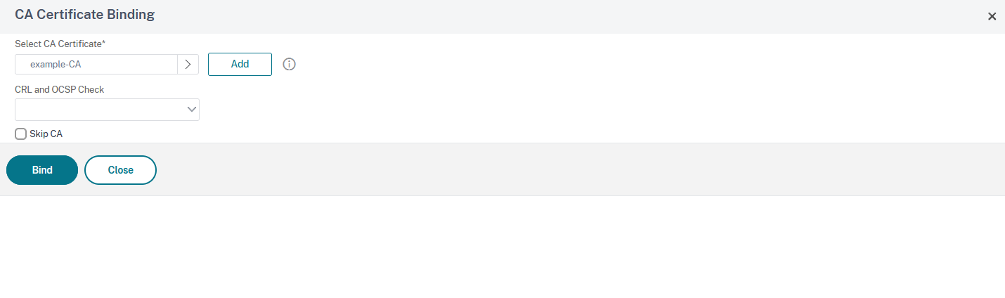 CA Certificate Binding画面が表示されるので、「Select CA Certificate」に「example-CA」が入力されているのを確認し、「Bind」をクリックします。