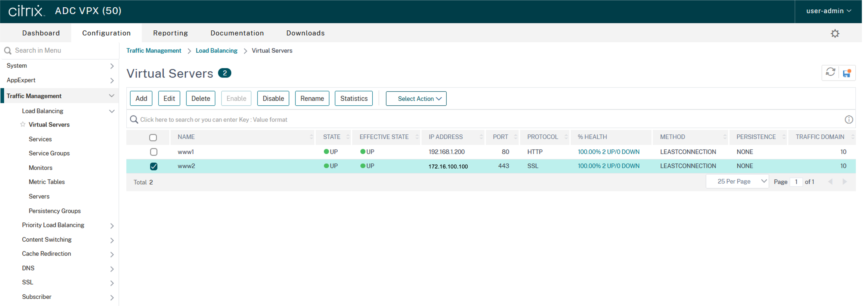 Virtual Serverの画面で対象の「State」および「Effective State]が「Up」である事を確認します。
