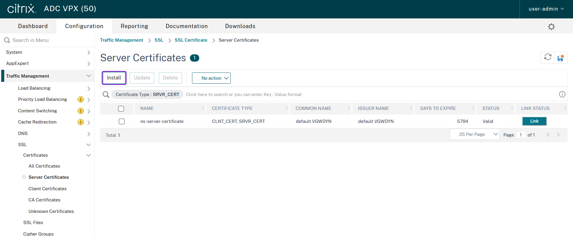 add ssl certKey server1 -cert server1.crt -key server1.key.pass -passcrypt "秘密鍵のパスワード"