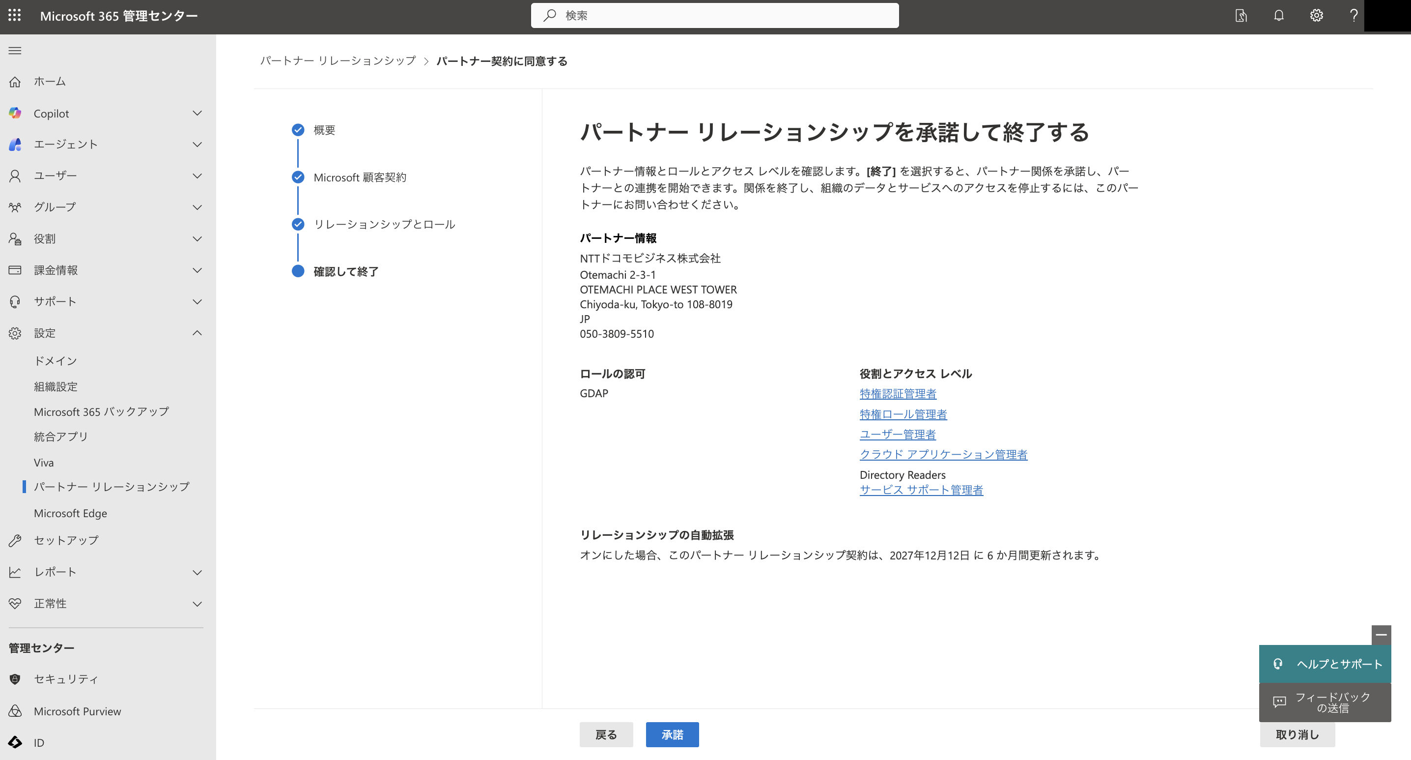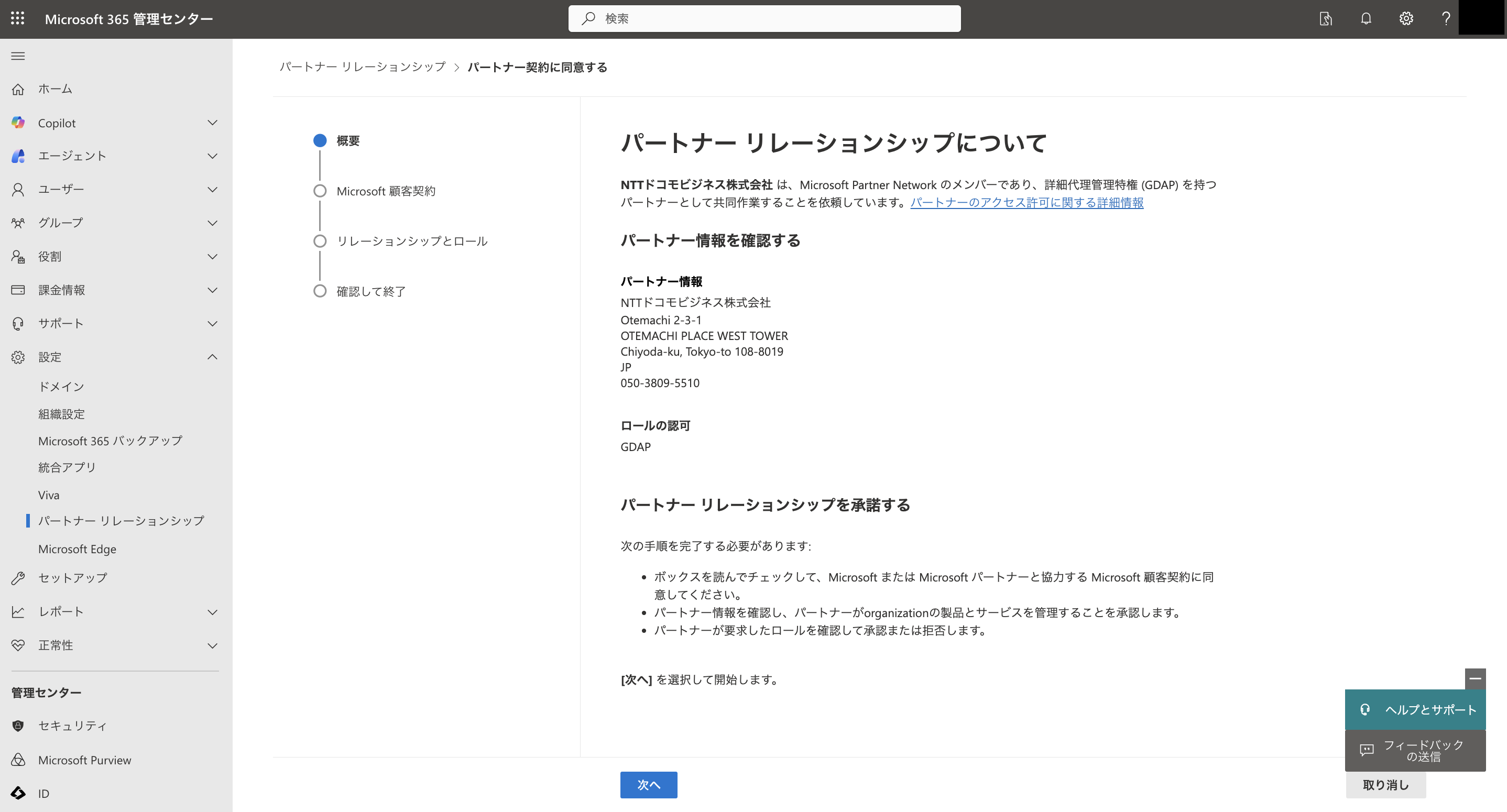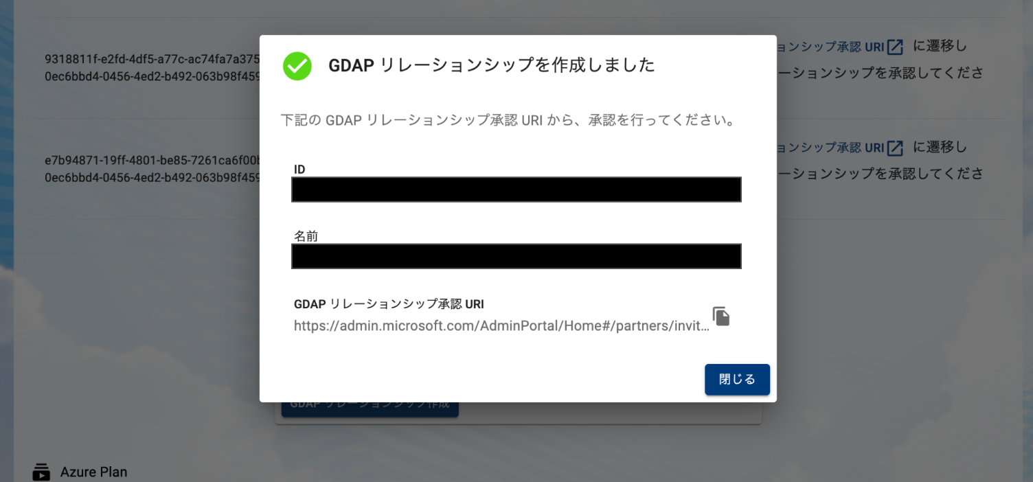 本操作では弊社がお客さまのAzureサブスクリプションを管理するために必要なGDAPリレーションシップの承認を行います。