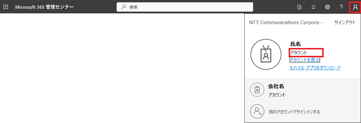 ドメイン名が異なる場合は、画面右上のアカウント情報にて正しいアカウントでログインし直してください。