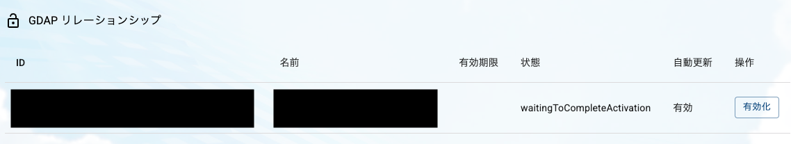 GDAPリレーションシップの状態がwaitingToCompleteActivationになるまでは通常5分程度かかりますが、最大60分かかる場合があります。