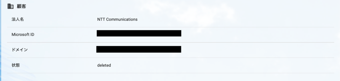顧客情報の削除が完了すると、状態がdeletedと表示されます。