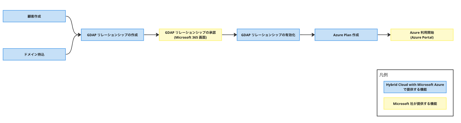 Hybrid Cloud with Microsoft AzureでMicrosoft Azureを新規にご利用開始するためには、以下のフローに沿ってAzureサブスクリプションの払い出しを行う必要があります。