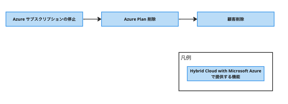 Hybrid Cloud with Microsoft Azureを利用終了するためには、以下のフローに沿ってAzureサブスクリプションおよびAzure Plan、顧客を停止・削除する必要がございます。