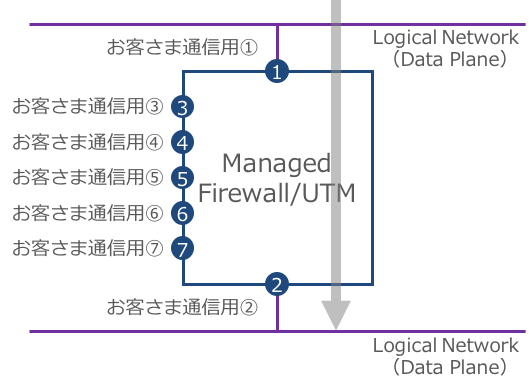 お客さまが設定されたファイアウォールポリシーに基づき、トラフィックを制御する機能 |