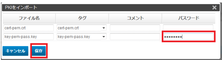 パスワードがついている場合は、[パスワード]にパスワードを入力して、[保存]をクリックします。