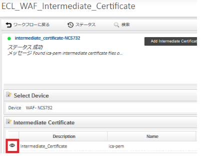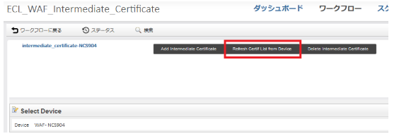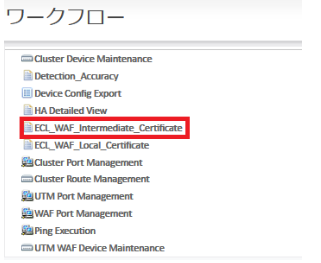[サービス]タブの[ワークフロー]に表示されている[ECL_WAF_Intermediate_Certificate]をクリックします。