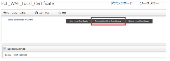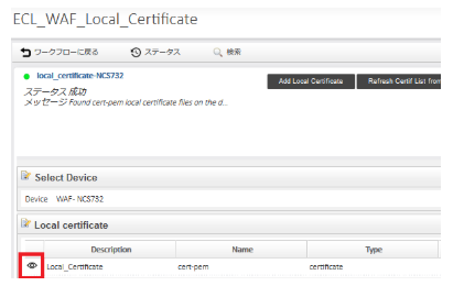[サービス]タブの[ワークフロー]に表示されている[ECL_WAF_Local_Certificate]をクリックします。