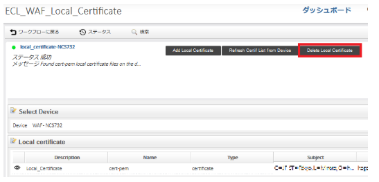 アップロード対象のデバイスの[Delete Local Certificate]をクリックします。