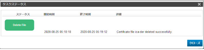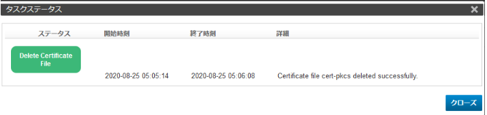 削除したい証明書を選択後[削除]をクリックして、[今実行]をクリックします。実行完了まで時間がかかります。
