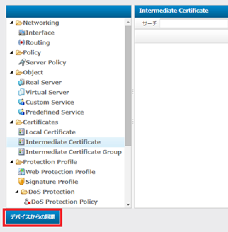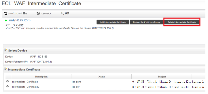 アップロード対象のデバイスの[Delete Intermediate Certificate]をクリックします。