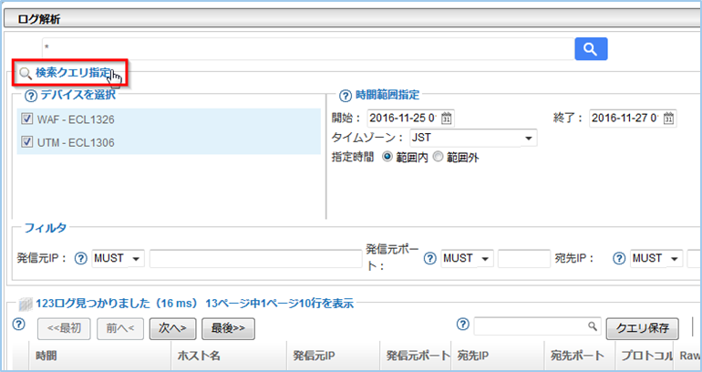 条件を指定してログを検索、ダウンロードできます。