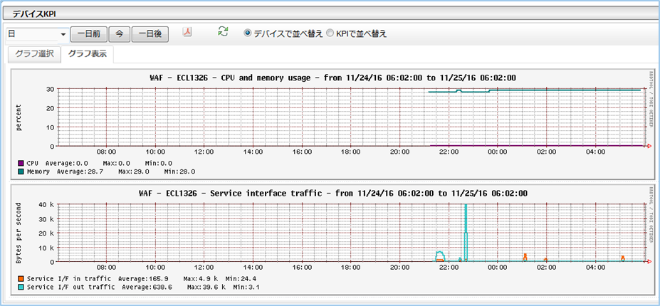 WAFのインターフェースのトラフィック量をIn/Out別々に表示します。 |