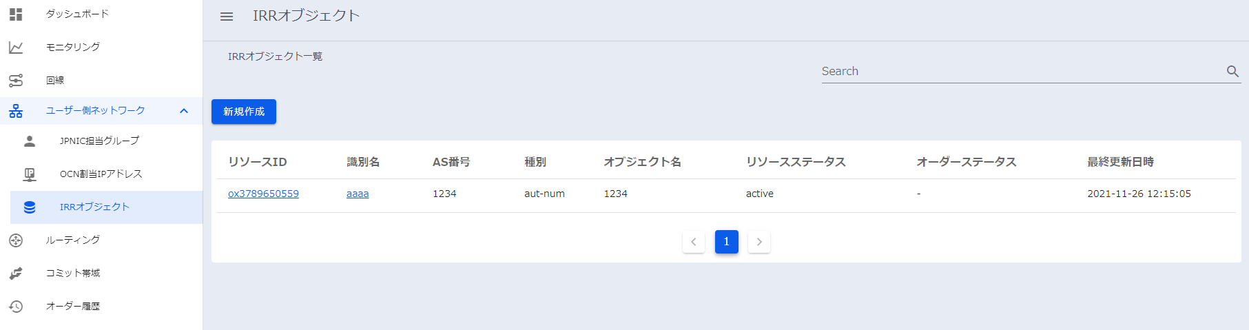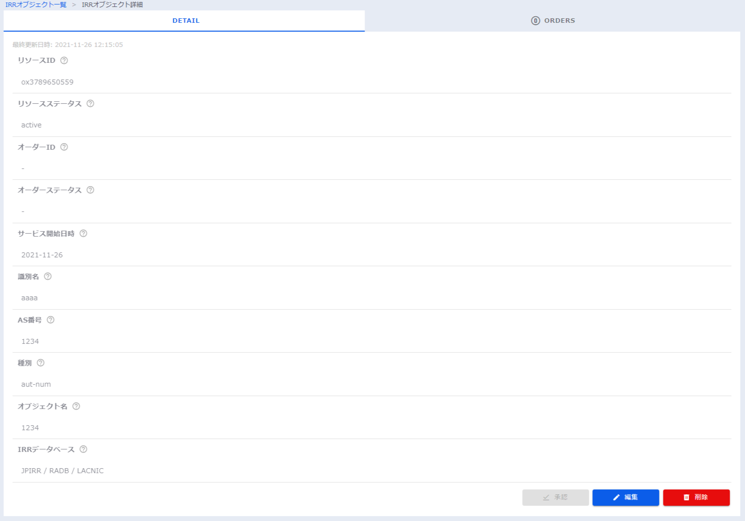 IRR Ojectリソースの一覧から [該当のリソース] を選択すると各リソースの詳細情報が表示されます