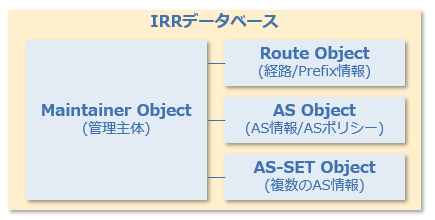 <AS Object 例>aut-num: AS4713as-name: OCNdescr: NTT Communications Corporationnotify: admin@ocn.ad.jpadmin-c: JP00211841tech-c: JP00211841mnt-by: MAINT-AS4713changed: admin@ocn.ad.jp 20210528source: JPIRR