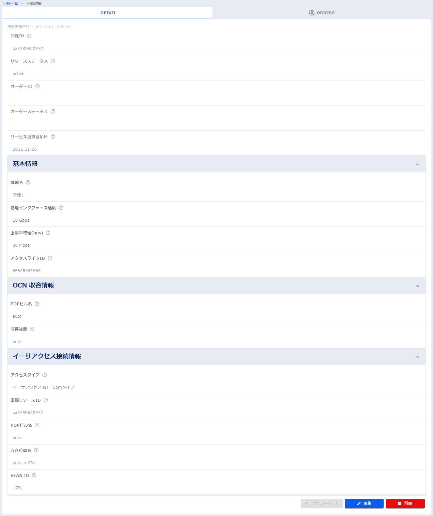 ①回線リソースの「識別名」・「上限帯域(bps)」の変更方法¶