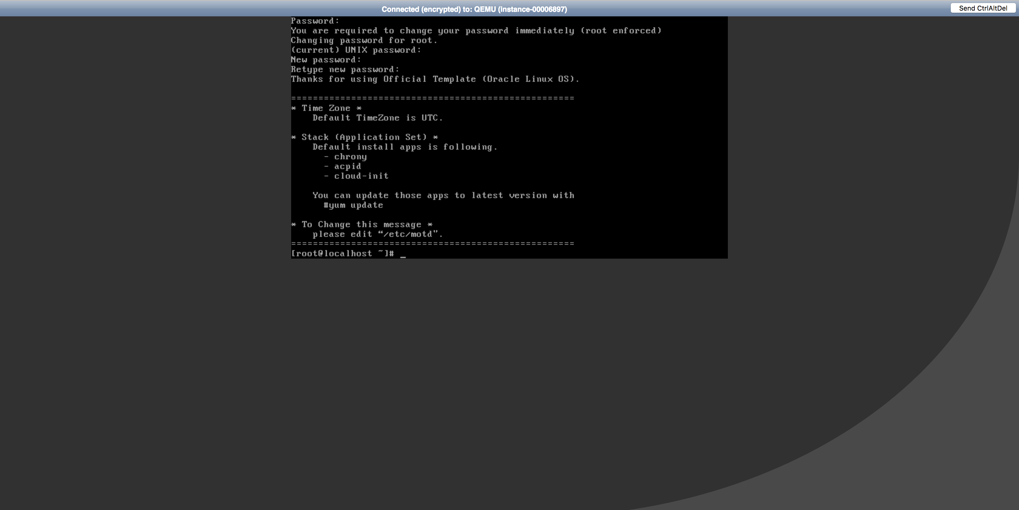 以下のコマンドを実行し、oracleユーザのパスワードを設定します。