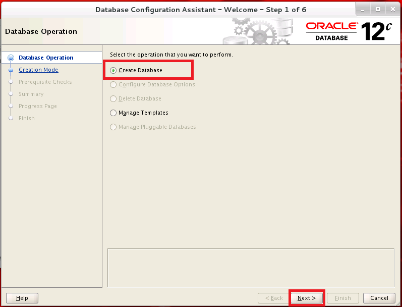 [Database Operation] ウィンドウで、 [Create Database] を選択します。