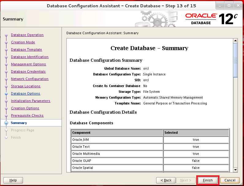 [Summary] ウィンドウで、設定を確認し、 [Finish] を選択します。