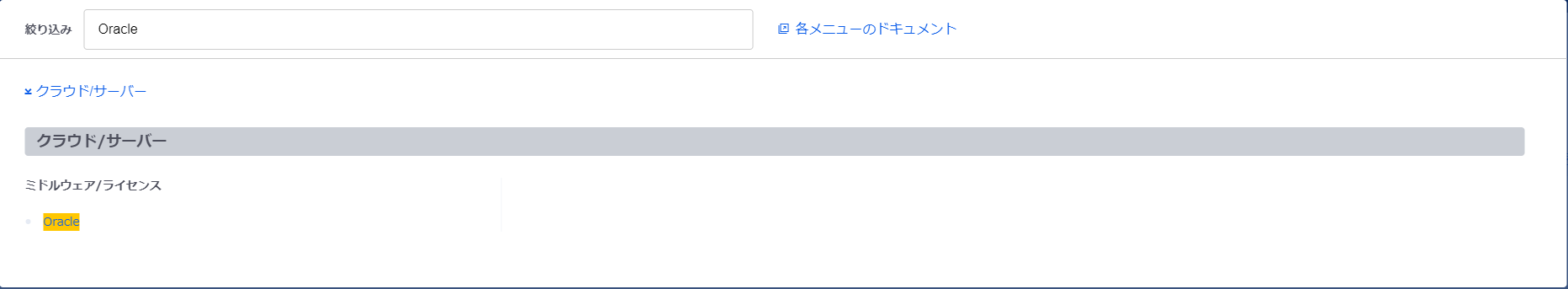 カスタマーポータルへログインし、サービスメニューから「Oracle」を選択し、次画面に遷移します。