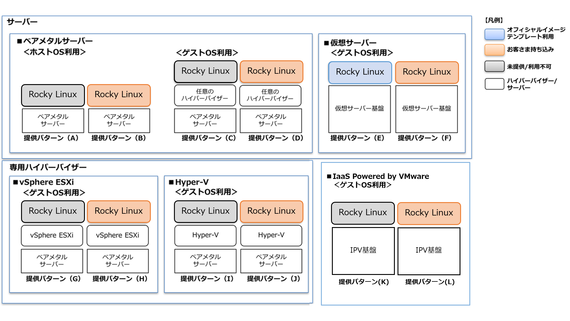 Rocky Linuxをご利用される場合の詳細な利用形態は下記の通りです。