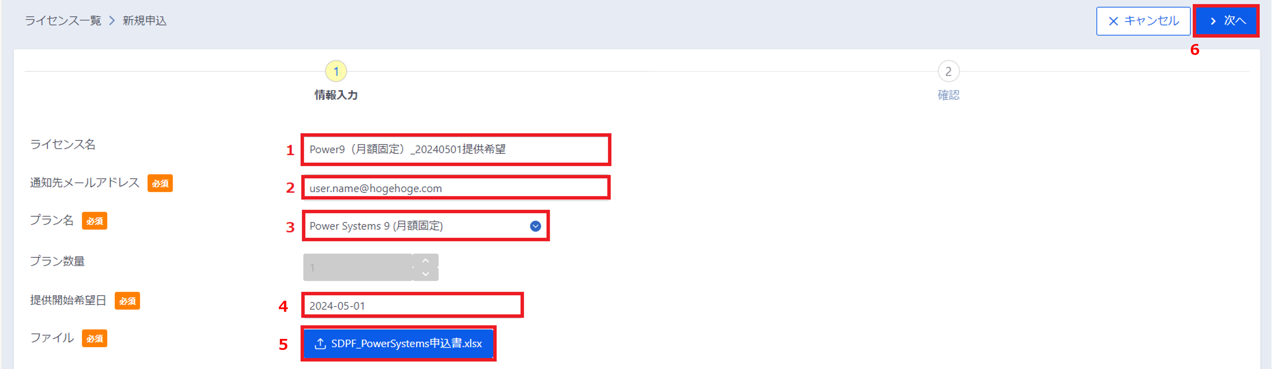 3-4)提供開始希望日欄に、対象ライセンスの提供希望日を入力。翌月以降の未来日も、選択月を変更することで選択可能となります