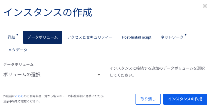 手順4までで作成したイメージボリュームをもとにしたインスタンスの作成